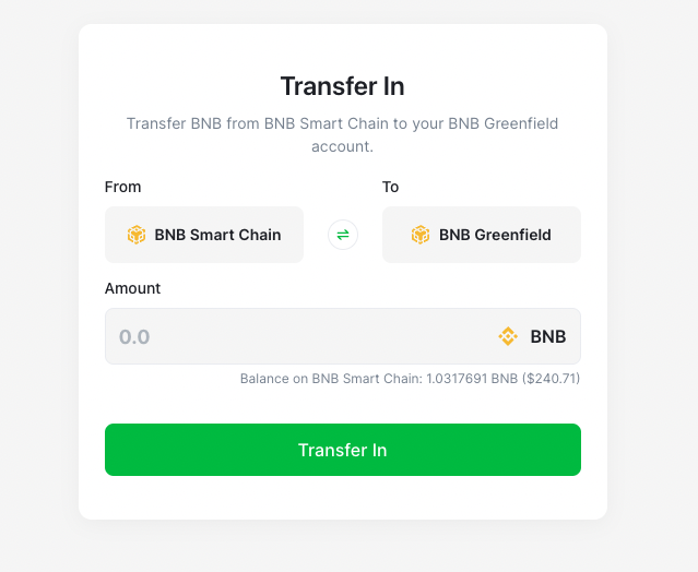 If you're using the Greenfield Network, the Transfer In page will be displayed differently. To avoid any confusion, make sure that you're on the correct network before proceeding with the transfer process. By following these simple steps, you can quickly and easily transfer BNB tokens to your Greenfield account and start using DCellar to manage your decentralized data.